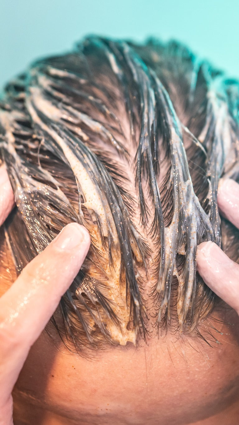 1) Scrubul – se aplică pe scalpul umed, masând ușor, de 1-2 ori pe săptămână. Se clătește bine.